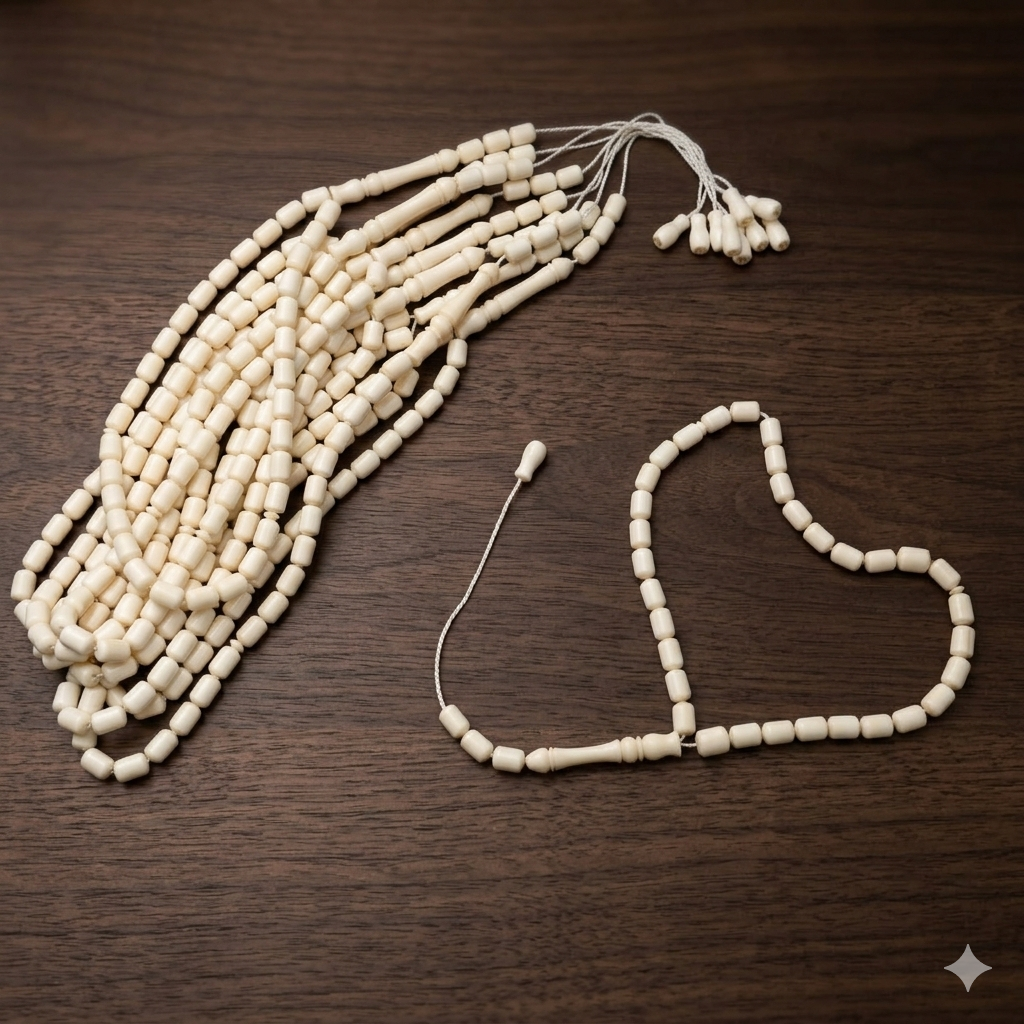 اللون العاجي الجذاب: اللون الطبيعي للسبحة يتناسب مع جميع الأذواق والمناسابات، مما يجعلها قطعة “أساسية” في أي محل سبح أو إكسسوارات رجالية.