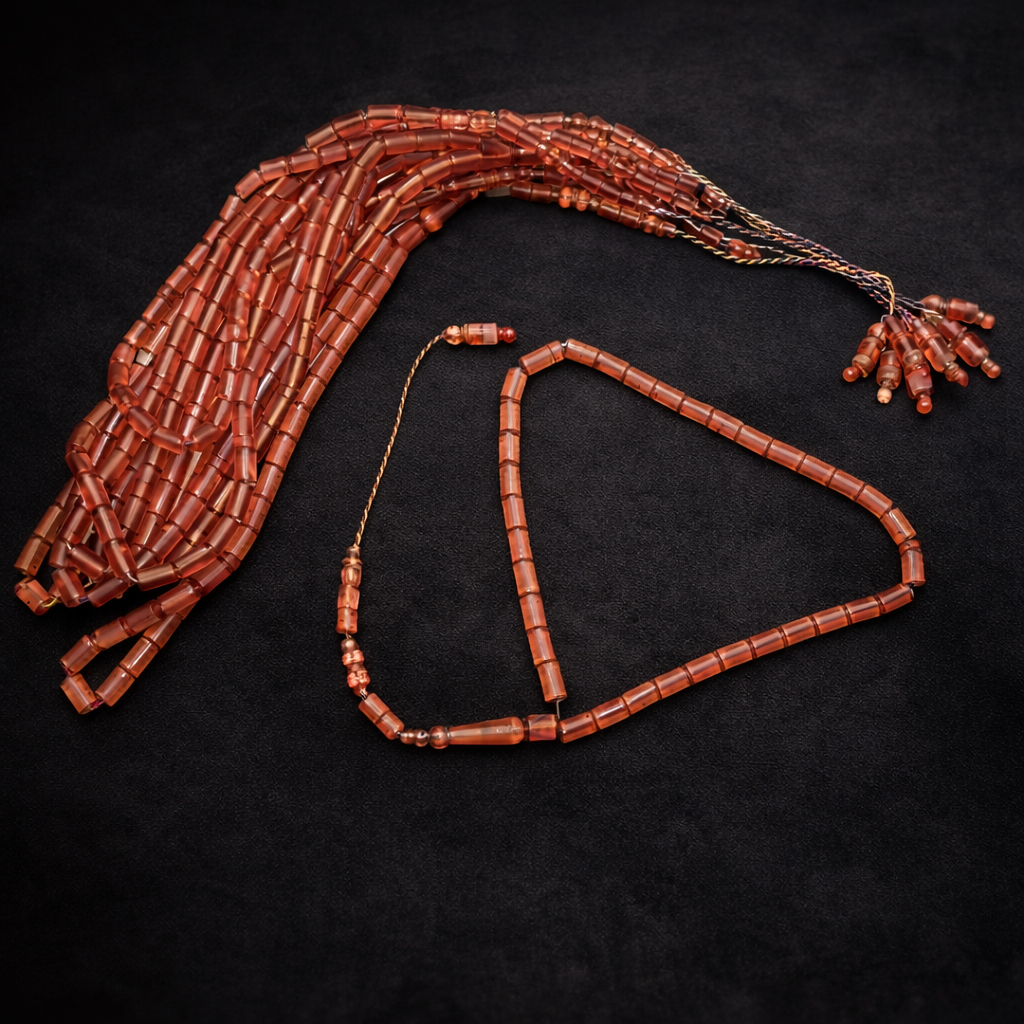 خامة الصب الجديد: تتميز هذه الخامة بصلابة عالية جداً، ومقاومة للخدش، مع “رنة” خرز مميزة جداً عند التسبيح، مما يمنح العميل شعوراً بالفخامة في كل حركة.