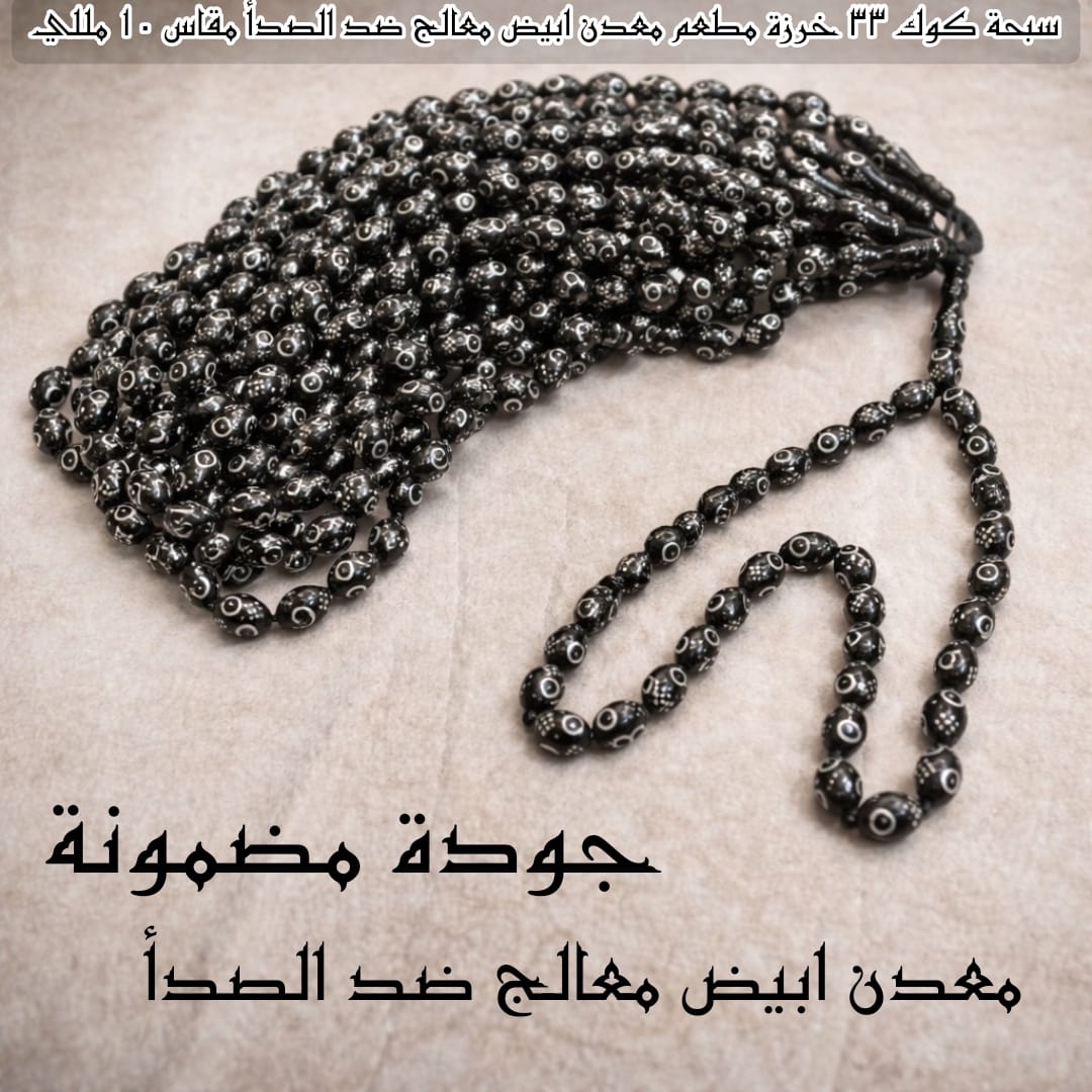 سبحة كوك زيتونة 33 خرزة مطعم معدن ابيض معالج ضد الصدأ مقاس 10 مللي