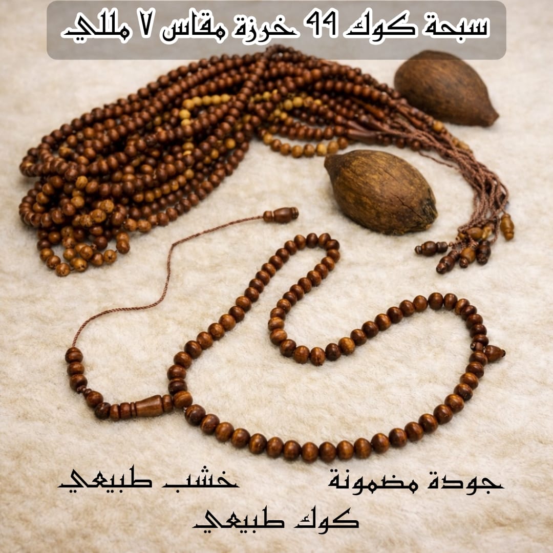 سبحة كوك طبيعي (99 خرزة) شكل البقلاوة (انسيابية مريحة) مقاس الخرزة 7 مللي (الحجم العملي المطلوب)اللون بني طبيعي أصيلا خشب صلب مقاوم للكسر والحرارة